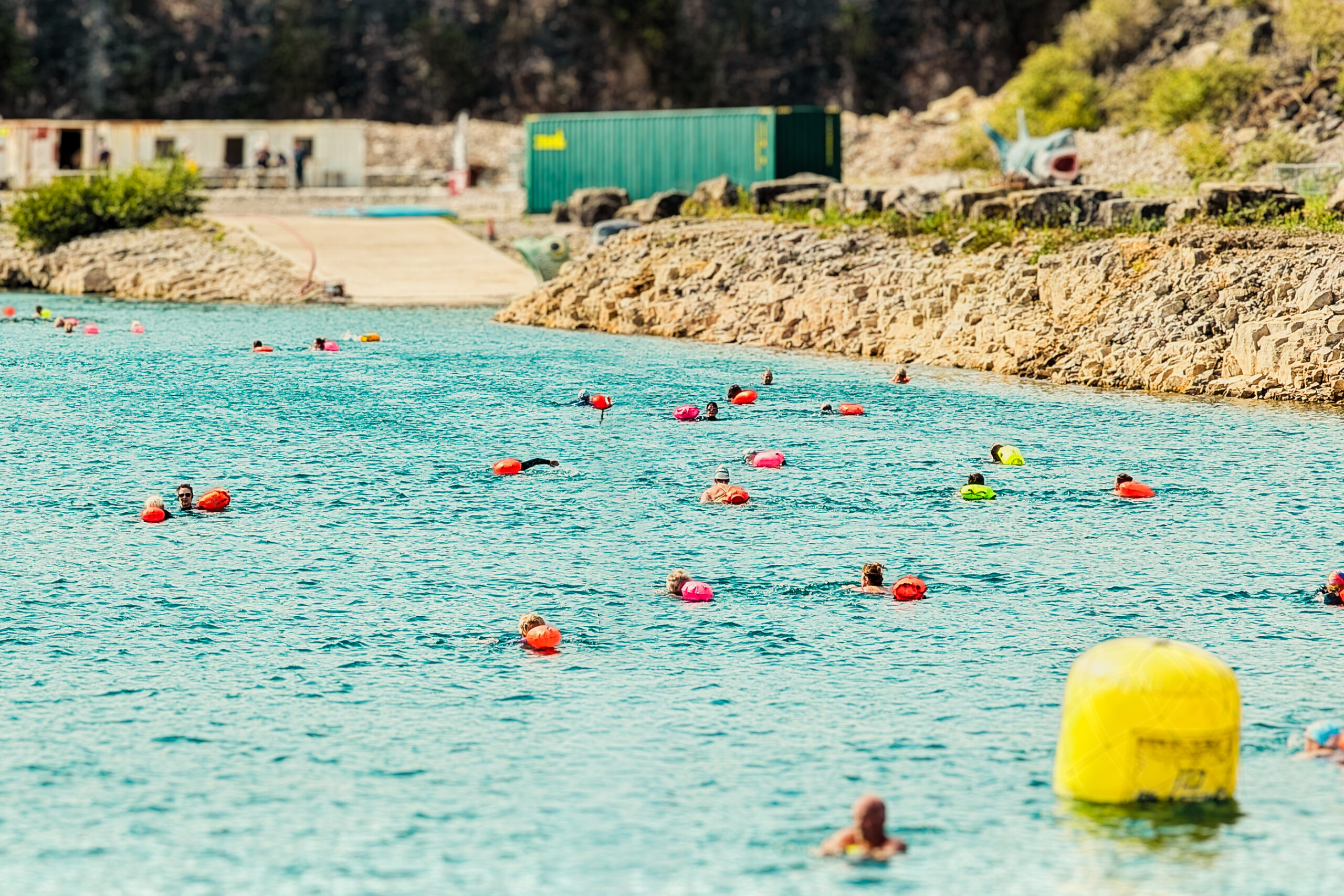 Dive into our crystal-clear water! Whether you're a leisurely swimmer or training for a triathlon, our fully lifeguarded site welcomes everyone.
